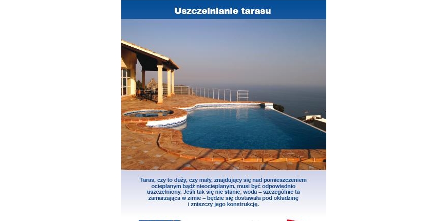 Taras, czy to duży, czy mały, znajdujący się nad pomieszczeniem ocieplanym bądź nieocieplanym, musi być odpowiedniouszczelniony. Jeśli tak się nie stanie, woda - szczególnie ta zamarzająca w zimie - będzie się dostawała pod okładzinę i zniszczy jego konstrukcję.